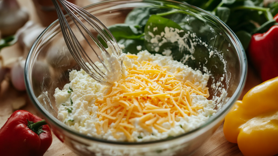 2. In a large mixing bowl, whisk together eggs and cottage cheese until well combined.
